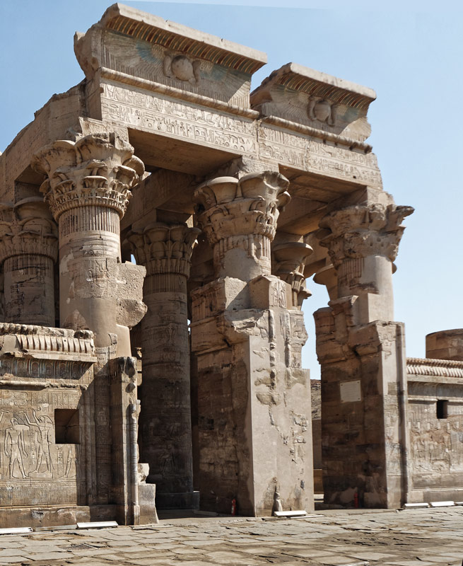 En dessous, un texte dédicatoire pourr Ptolémée XII. et pour les dieux, Haroèris à gauche et Sobek à droite.