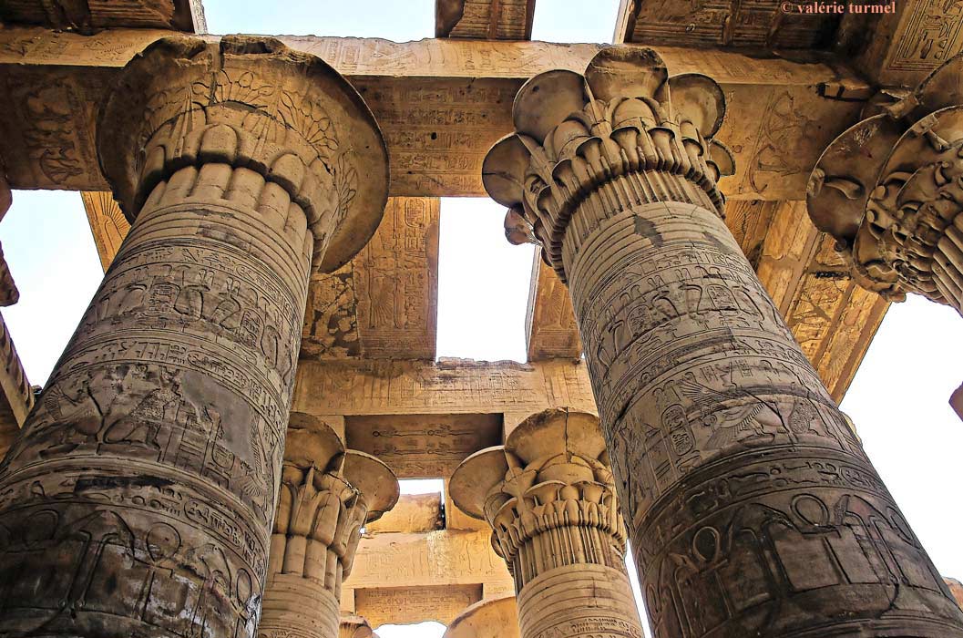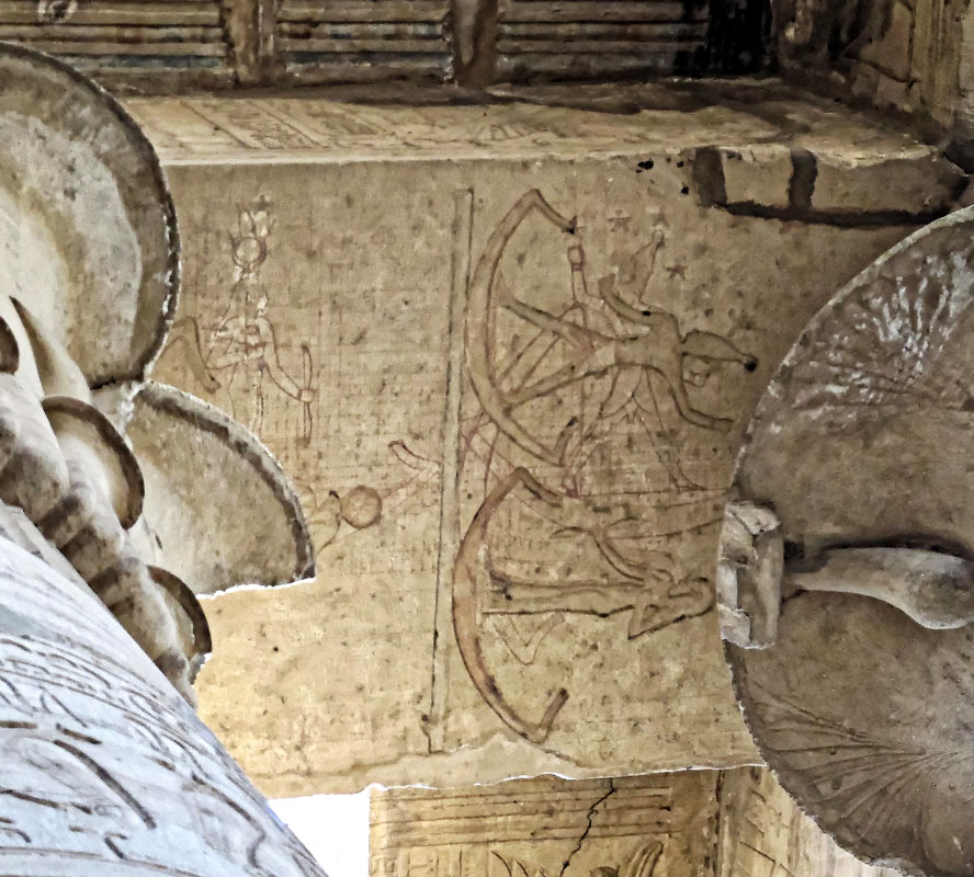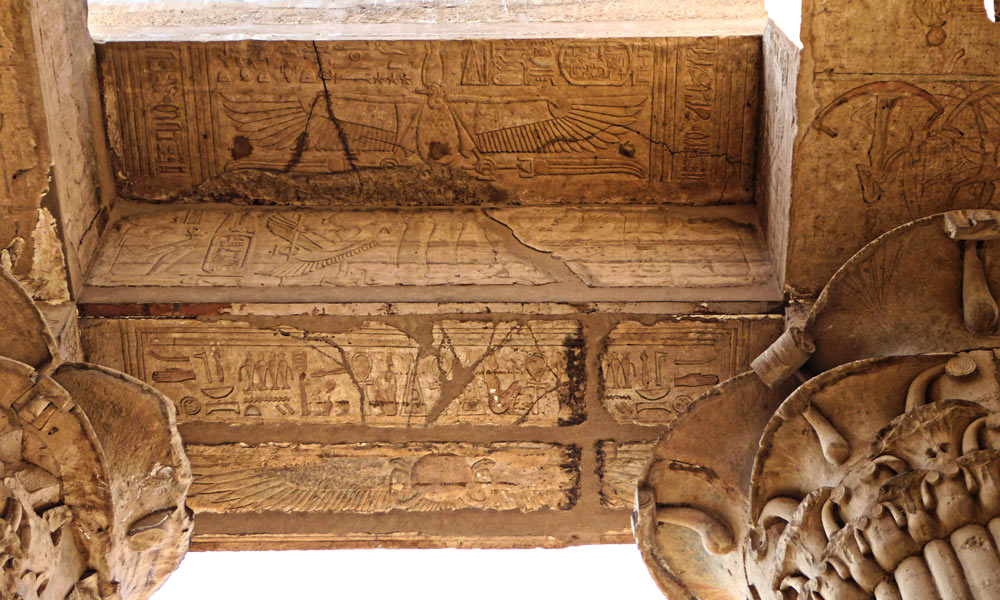Les architrabes EstèOuest sont décorées de scènes astronomiques sur les faces tournées vers le ba et sur les côtés, de faucons et de cartouches.
