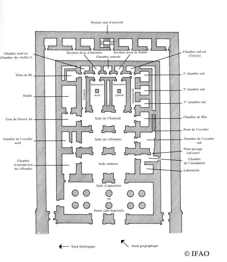 Il présente la partie interne du temple. Le pronaos se trouve devant l'hypostyle et est lui-même précédé de la cour et du pylône.
