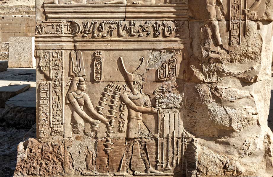 2) offrande d'un vase porté par l'effigie du roi à Isis