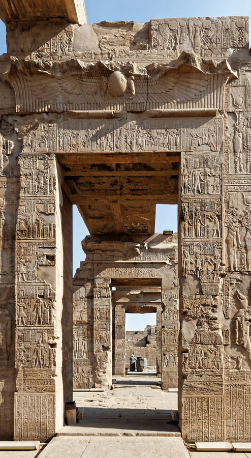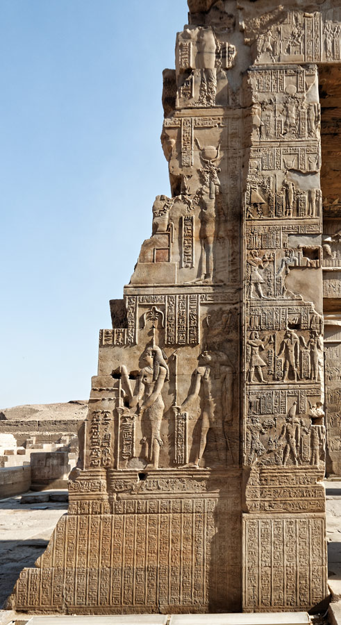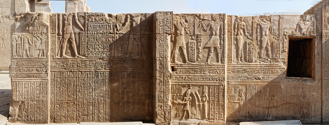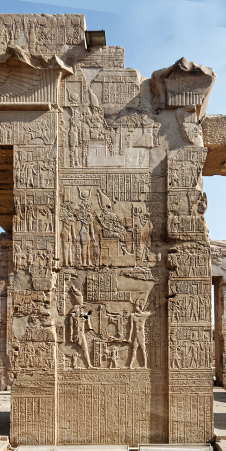 Les scènes de chaque côté du panneau central sont dédiées à Sobek, alors que Haroéris est représenté sur les petites scènes vers les extérieurs.