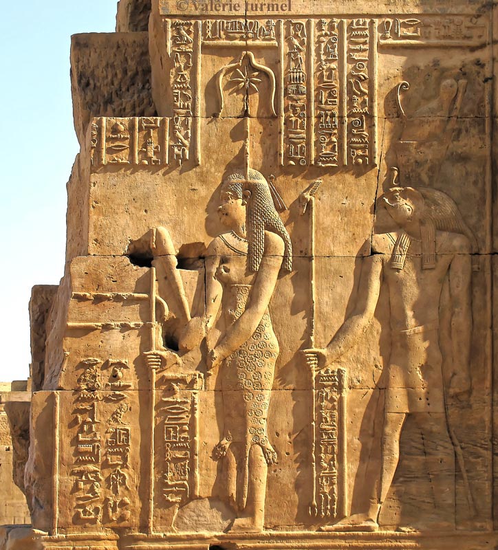 Sechat et Haroéris se tiennent devant le roi (détruit).