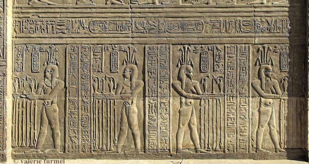 Les dieux Nil sont tournés vers les axes des sanctuaires, à doite vers le côté de Sobek, à gauche vers le côté d'Haroéris.