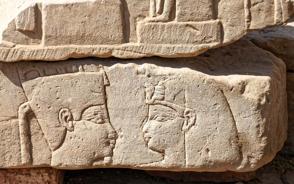 Le roi et un dieu face à face dans un scène en relief provenant peut-être d'un des piliers de la chapelle reposoir.