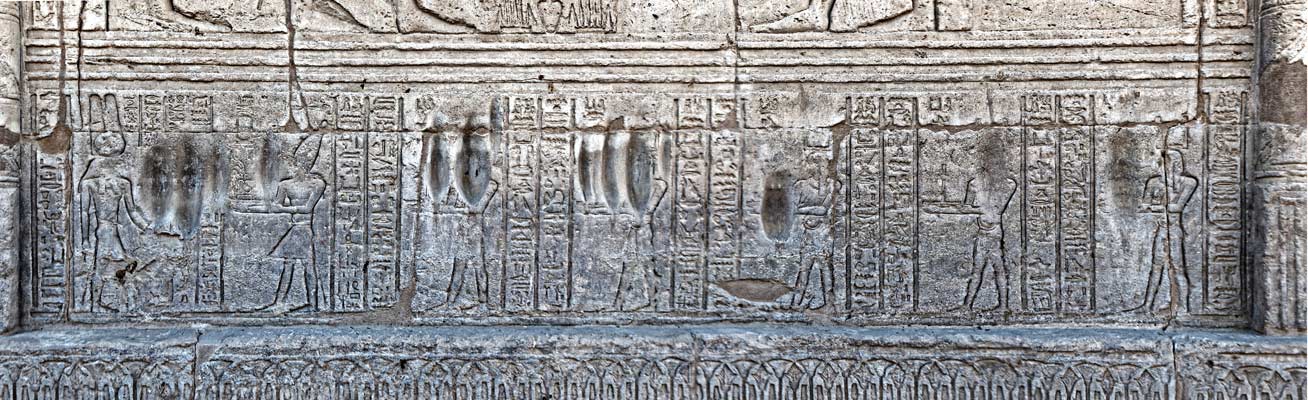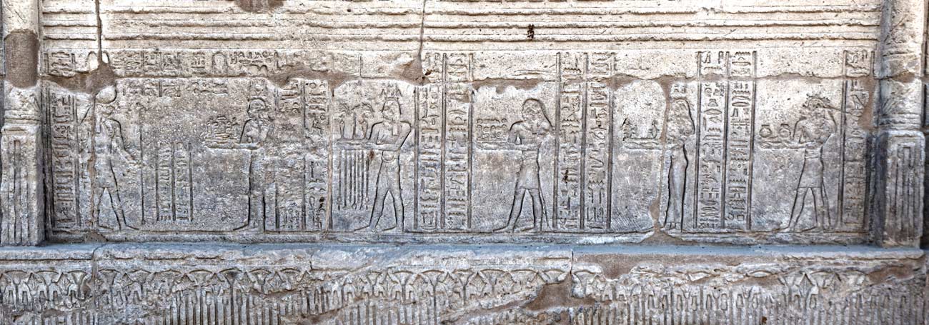 Le roi est purifié par Thot et Horus devant Montou et Tanent. Les cartouches du roi sont vides d'inscriptions.