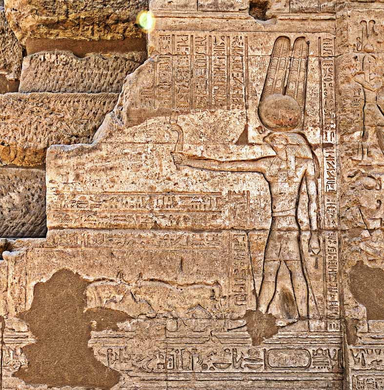Montou tend au roi lle Khepech (ou harpè). Cette sorte de glaive est devenu un symbole de vaillance.