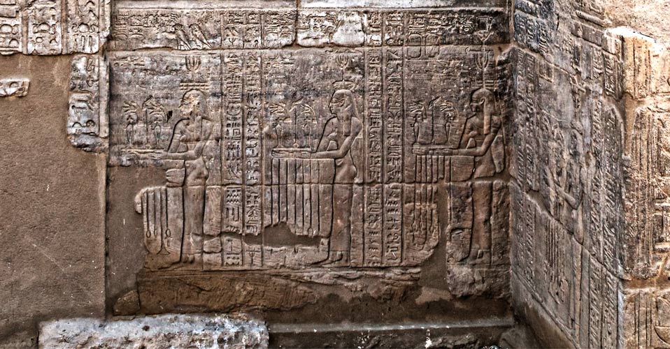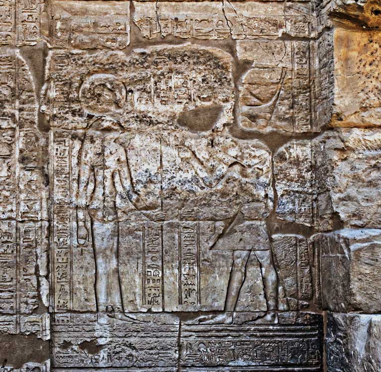 Le roi fait une offrande à Tanent ou Tjenenet à tête de lionne coiffée du disque solaire..