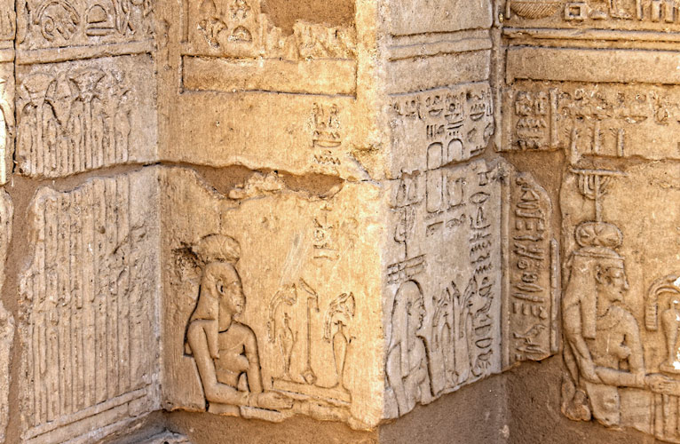 Autres représentations. A droite, le nome ou le site est représenté par 3 flèches. On le retrouve à l'extérieur.