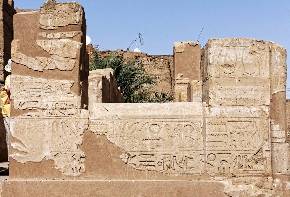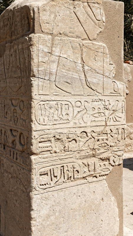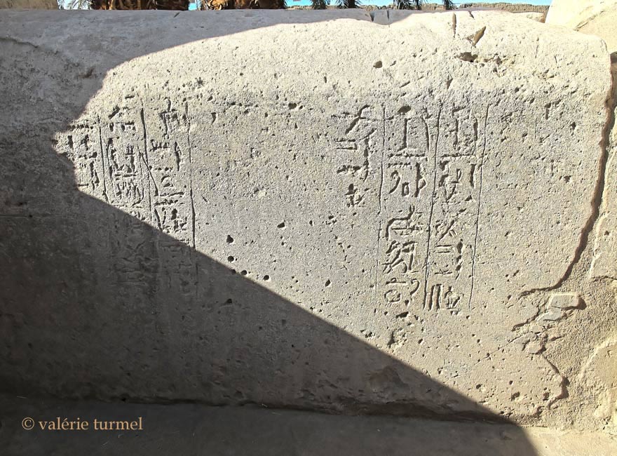 -2ème inscription : elle a été faite par Ramsès III : "rénovation du monument, qu'a faite le roi de Haute et Basse Égypte, Ramsès Heka-Iounou (le souverain d'Héliopolis)"