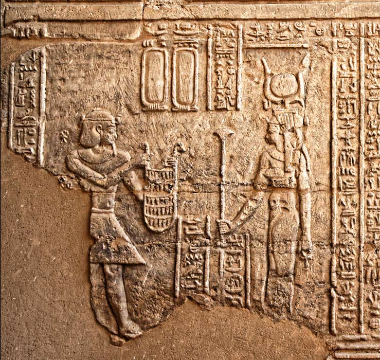 Le roi présente à la déesse Rattaouy du vin spécialement préparé pour les déesses et contenu dans un vase spécial.