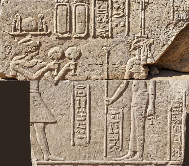 Cette scène n°274 a été reconstituée complètement par les chercheurs de ll'IFAO.. Elle est présentée dans les fascicules II et III sur Tôd. A partir des blocs épars autour du temple, il est possible pour un touriste visiteur du site d'en reconstruire la partie ci-dessus.