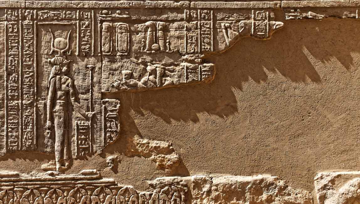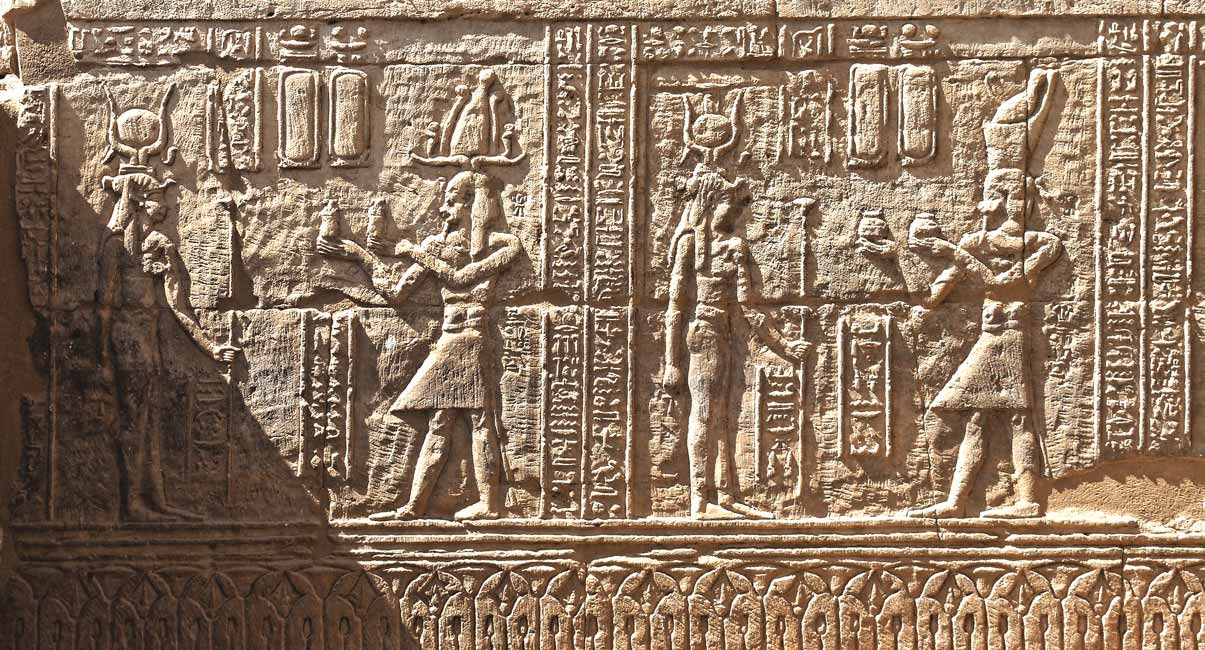 Le roi offre le collier Menyt à une déesse. dite 'sa mère'.Le collier est un instrument de musique dont le bruit écarte le mal et apaise la déesse.Il aurait joué un rôle contre Seth (S. Cauville, p.173)
