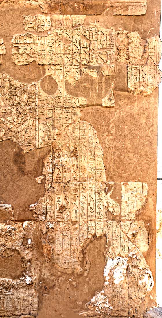 Les colonnes 2' à 26 mentionne le culte du roi dans le temple : "Sa Majesté.. accomplit les rites de l'encens sur la flamme".."et pourvut les autels d'argent, d'or, de cuivre et de bronze".."et de toutes les formes de pierres dures". (extrait de la traduction)