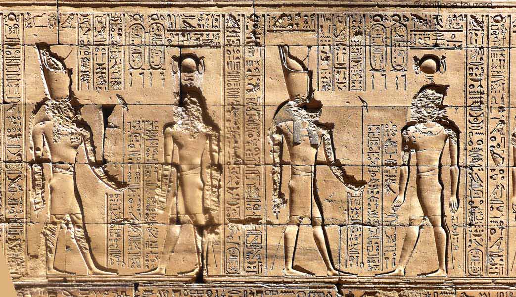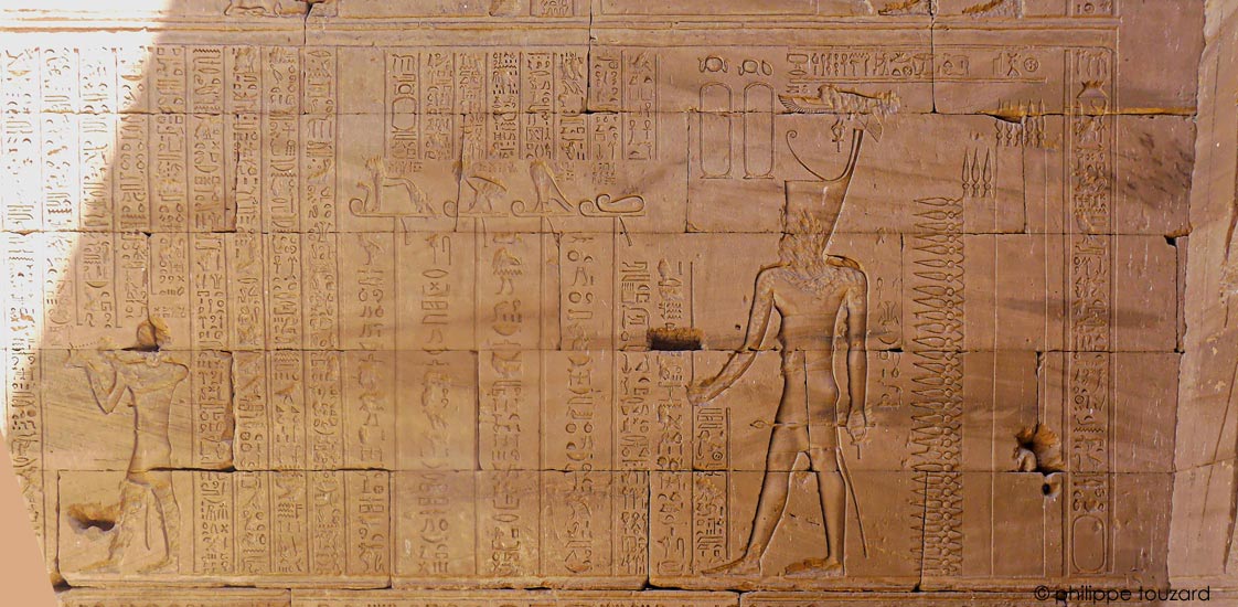 Le roi Ptolémée VIII devant Horus de Behedet.
