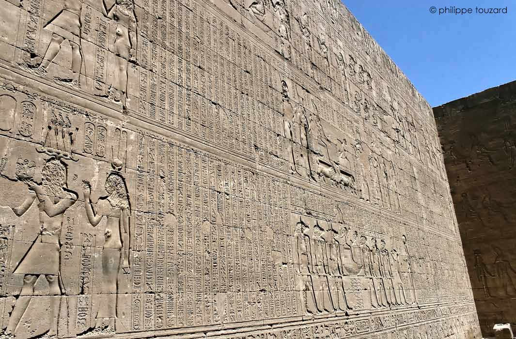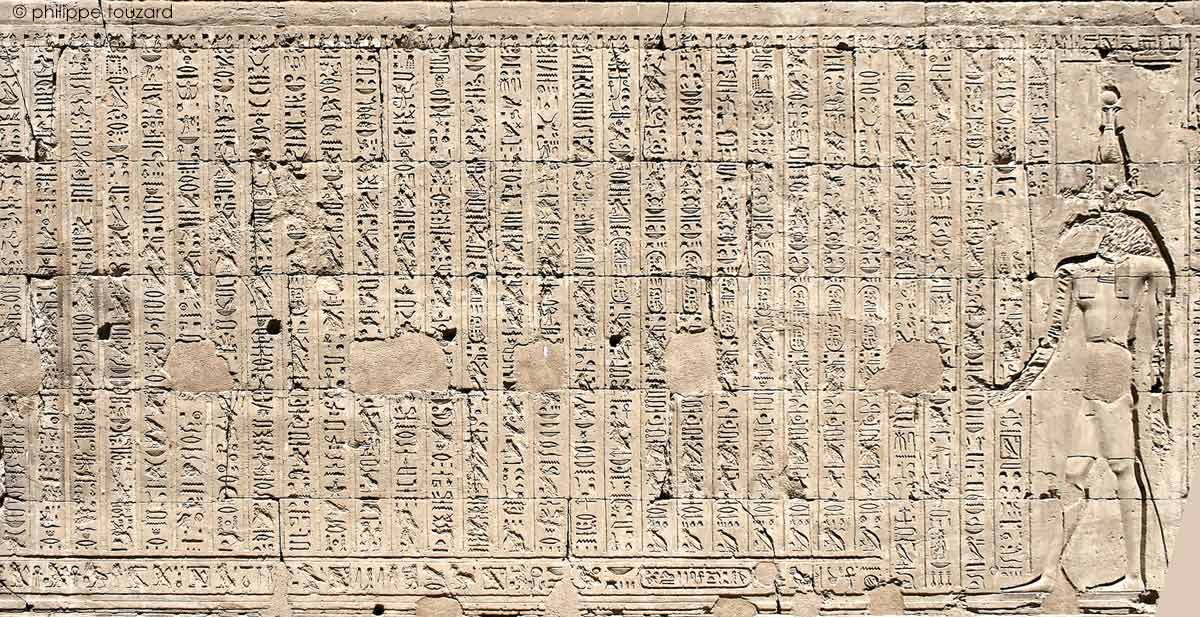 Devant lu les litanies adressés à la déesse Sekhmet représentée sur la scène suivante du registre du bas. (80 colonnes de texte).C