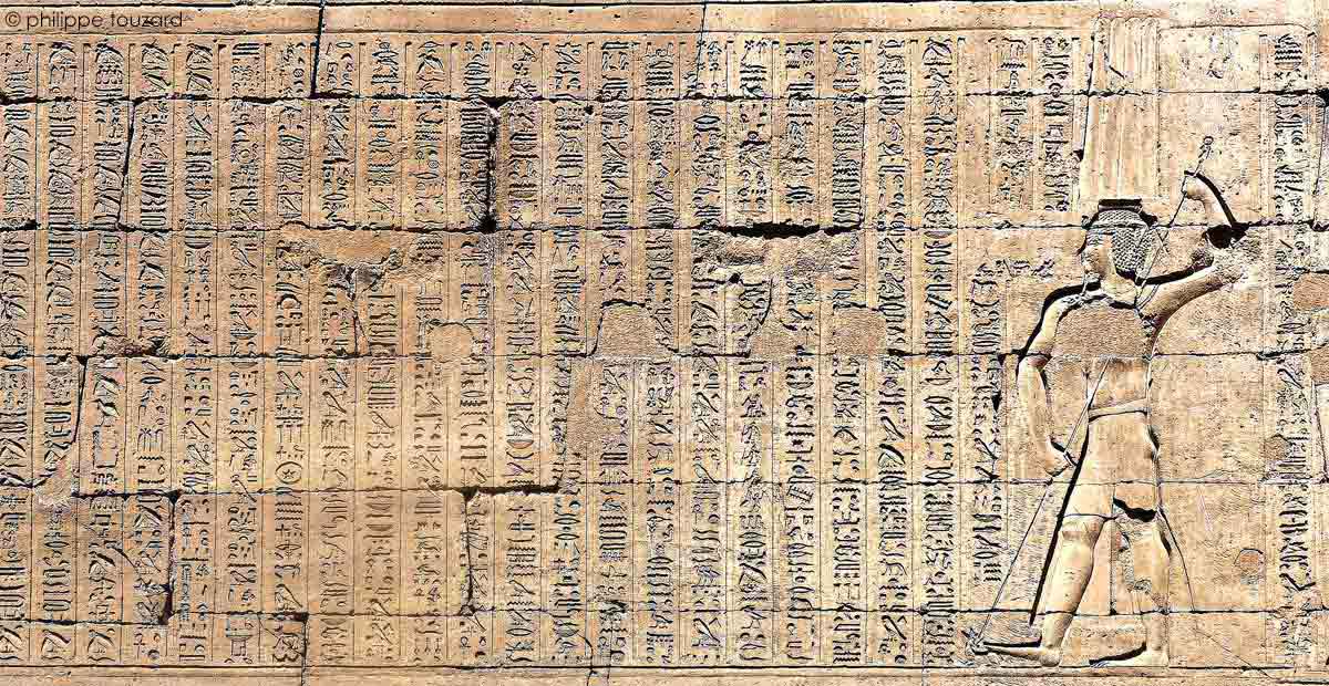 Le dieu Onouris transperce un âne, animal séthien. Devant lui, les litanies de Sechat de la scène suivante.