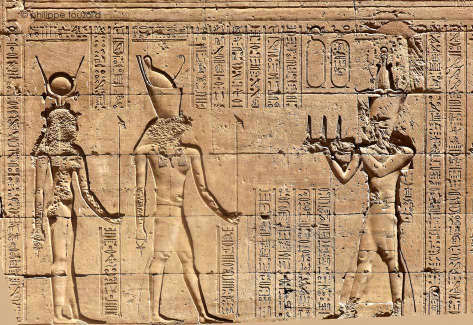 à Horus et à Hathor, dame de Iounet, œil de Rê, qui réside à Edfou.