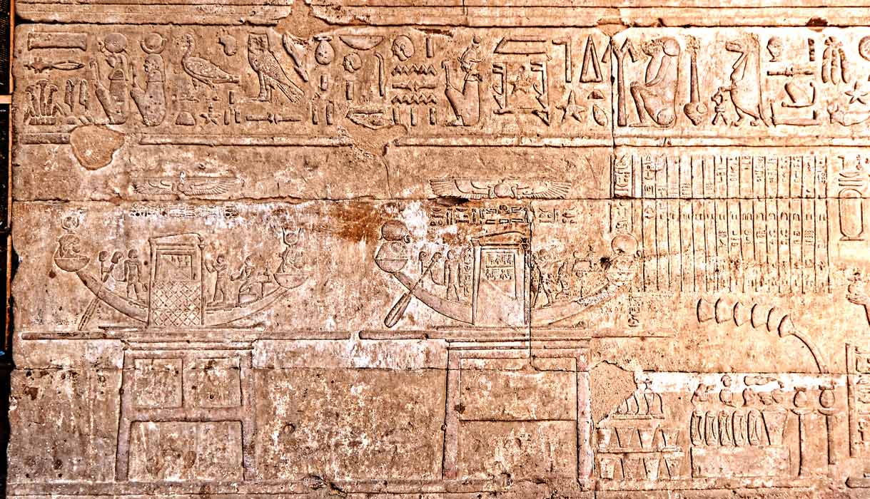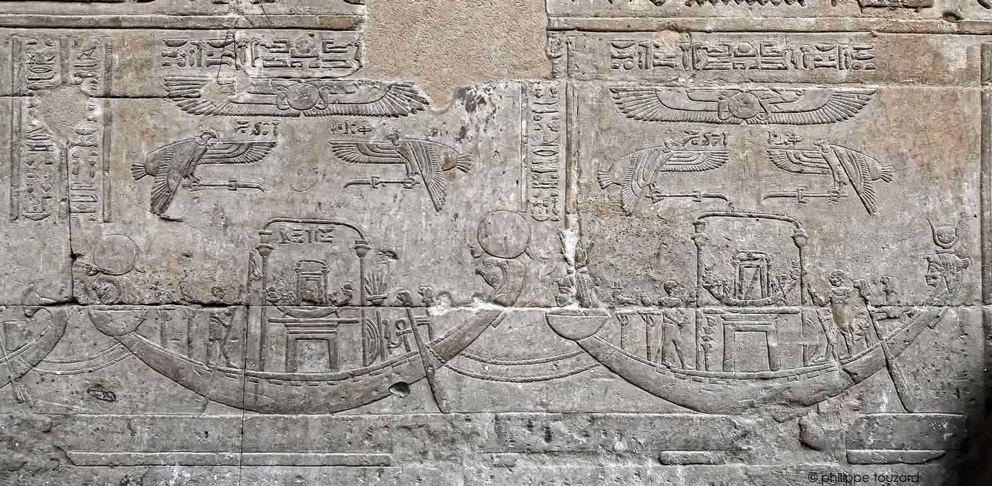 Les textes décrivent la navigation des barques sacrées depuis Dendera jusqu'à Edfou.