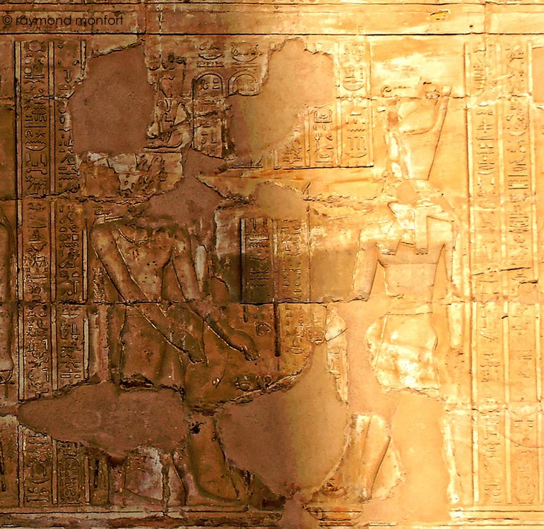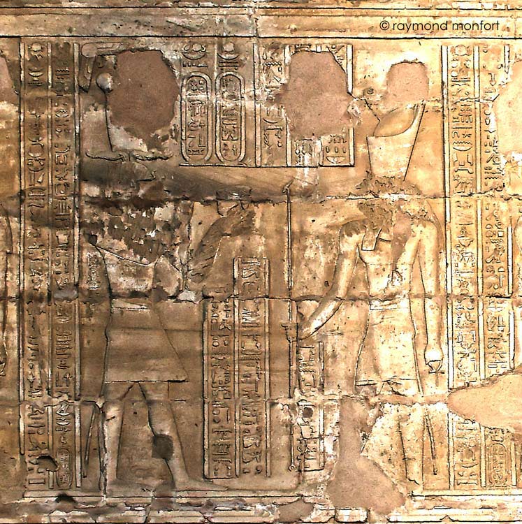 Le roi Ptolémée IX Soter II fait l'offrande de pains à Horus de Behedet.