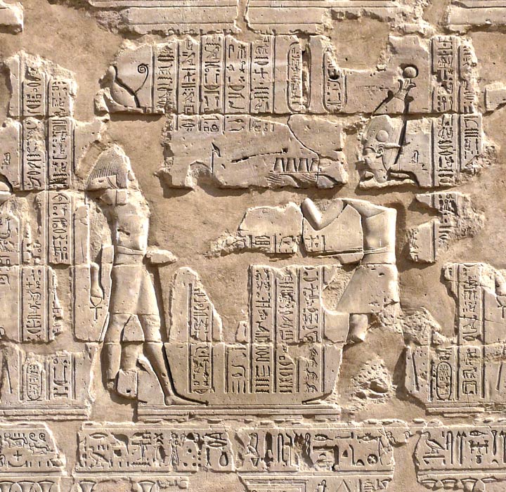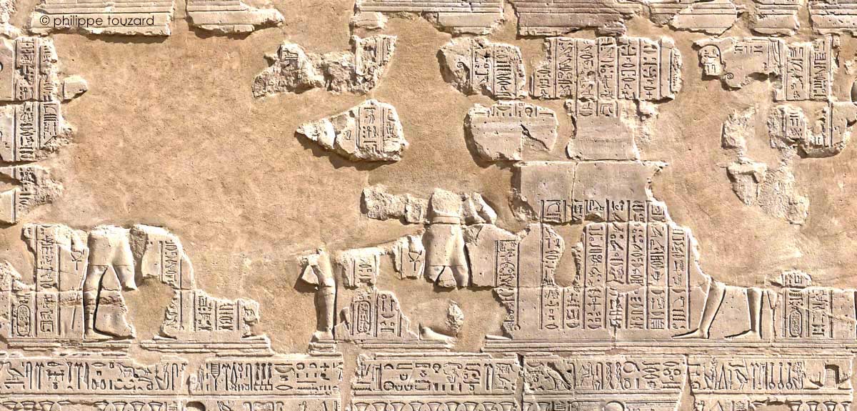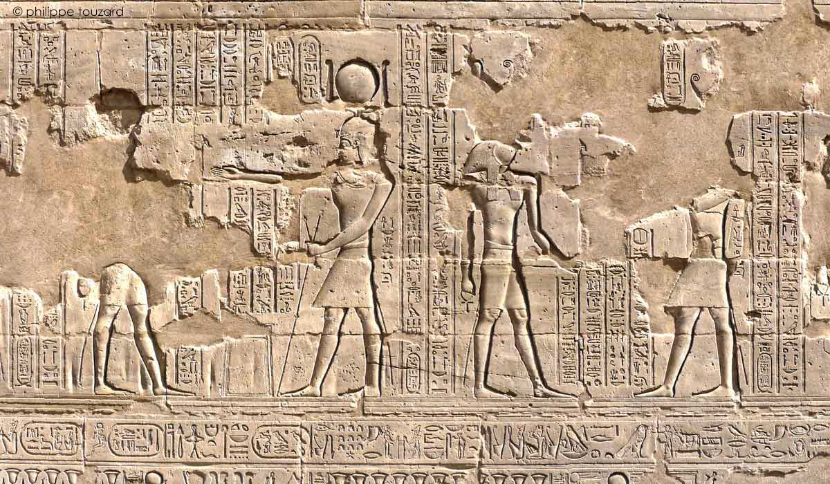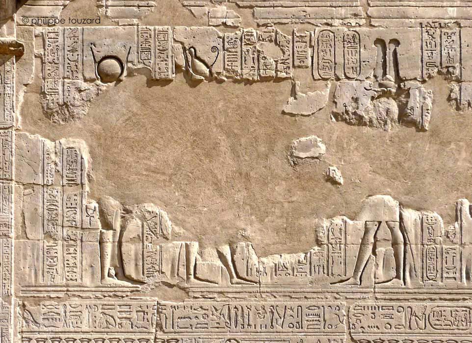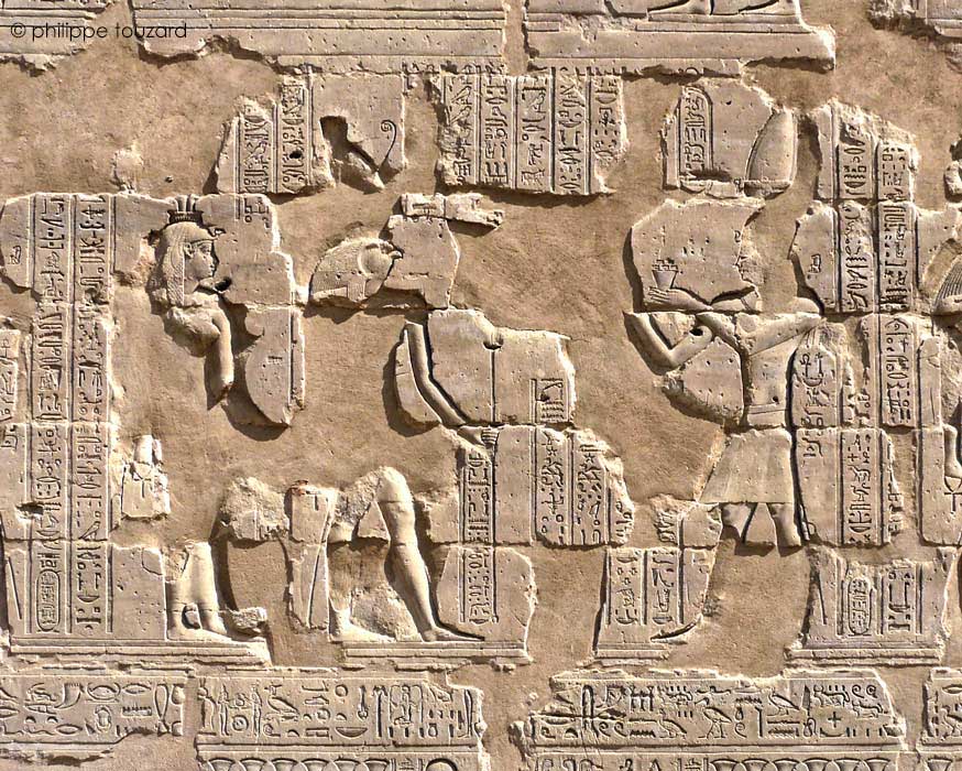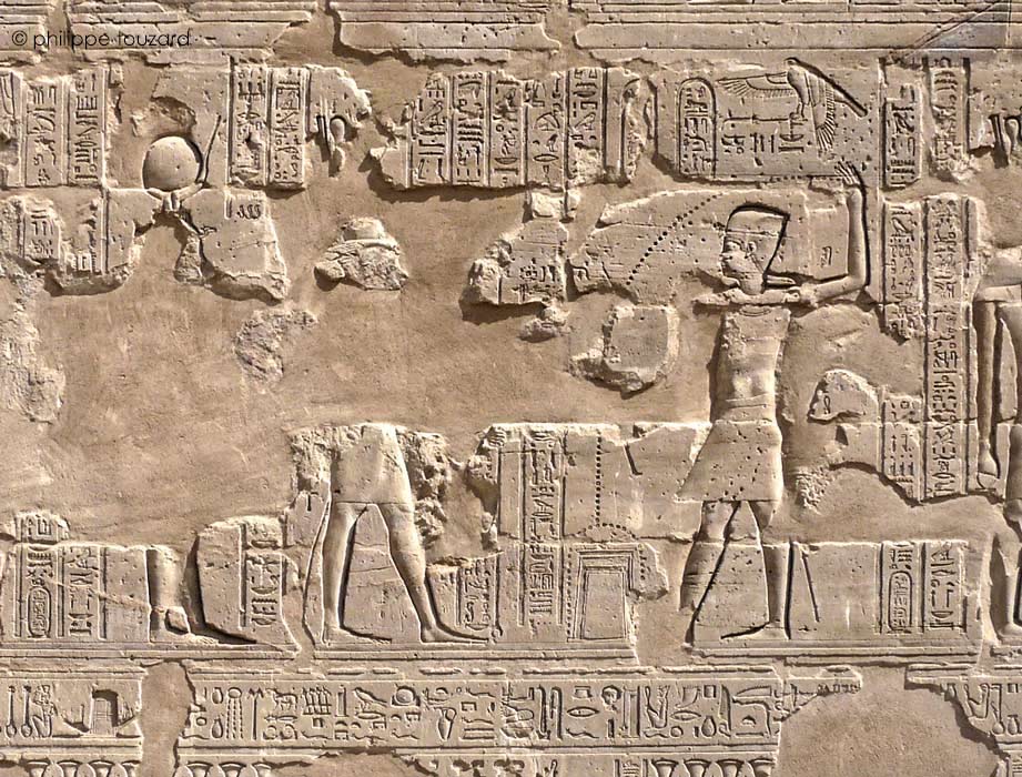 D'après les inscriptions restantes, le roi verse une libation pour purifier le temple devant Horus de Behedet.
