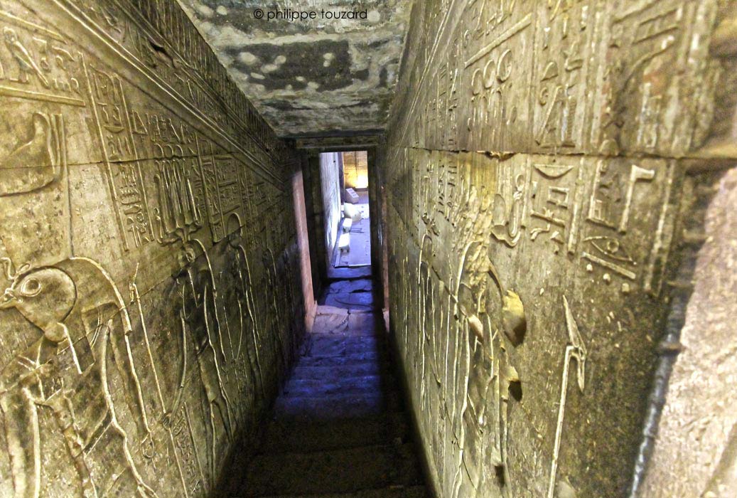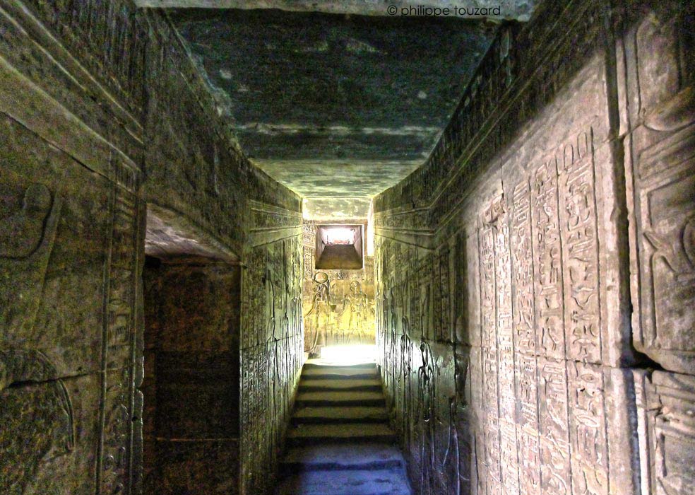 Au premier palier qui est visible dans le fond, l'escalier secondaire qui part de l'hypostyle rejoint celui-ci (voir ci-dessous).