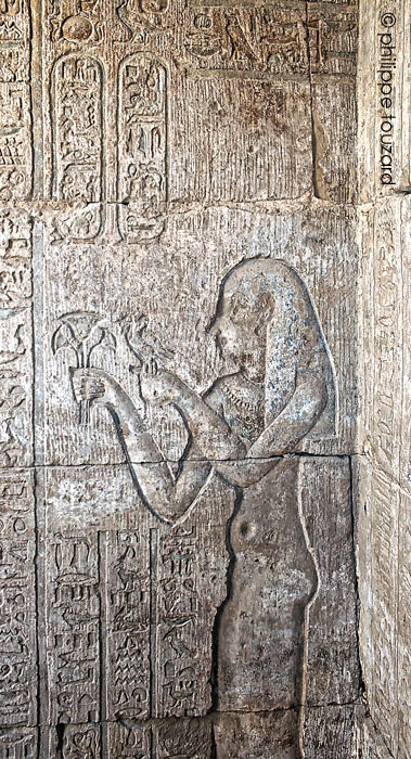 De la paroi Sud il ne subsiste que 2 figures dont celle ci-contre, une femme portant des fleurs. Il manque environ 4 mètres de cette paroi ruinée qui faisait la jonction avec la procession de la paroi Est qui arrive sur le toit.