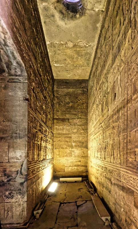 Cette salle jouxte l'hypostyle du côté Ouest, avec le laboratoire. Longue de 7,60 mètres et large de 2,10 mètres, elle avait une fonction liturgique. Y étaient entreposés les récipients contenant l'eau du Nil utilisée pur les purifications.