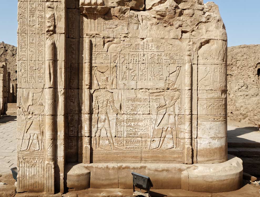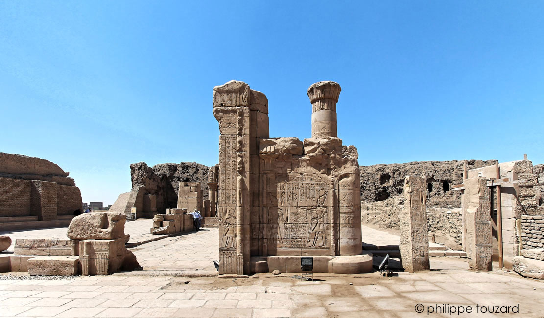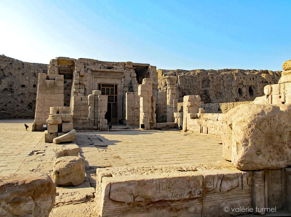 A droite, le premier mur-bahut de la série gauche (Chassinat, le mammisi, p.203)