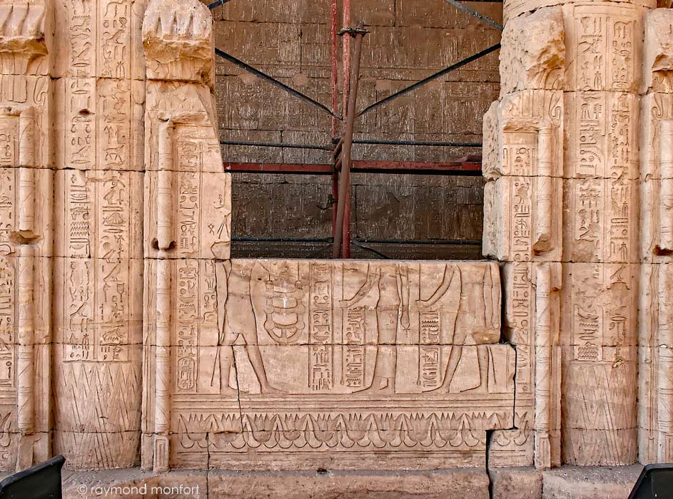 Le roi Ptolémée IX Soter se tient en adoration Horus et Hathor.