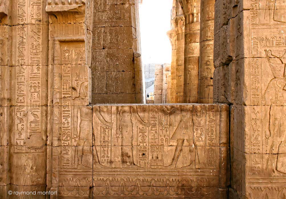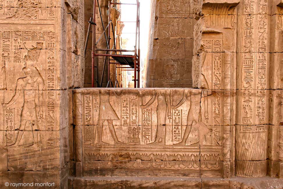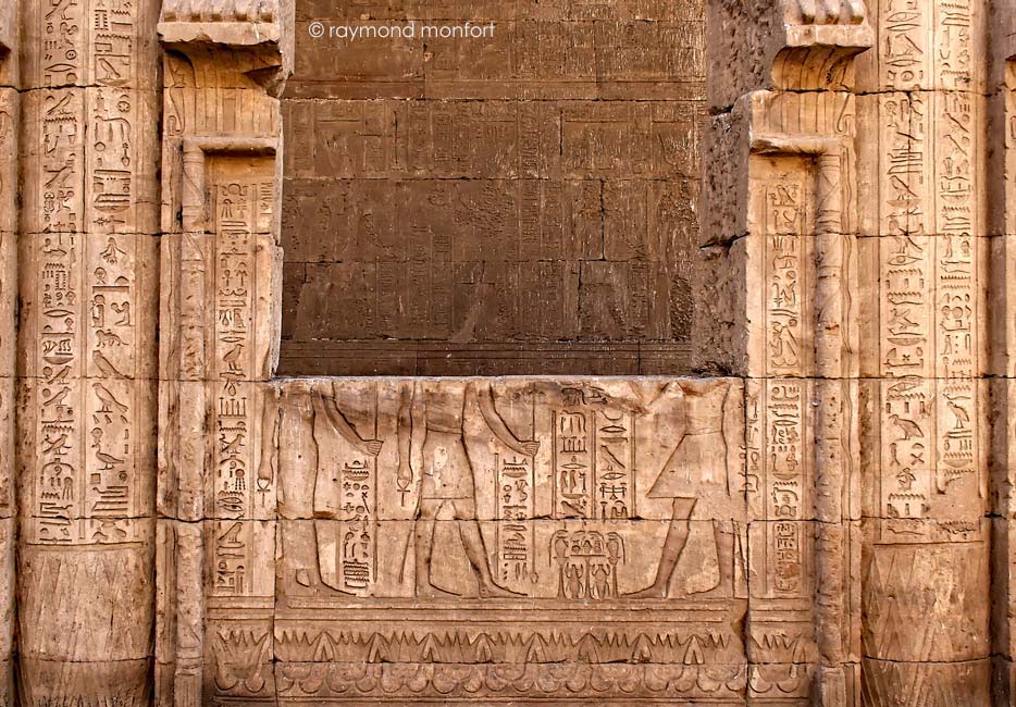 le roi est tourné vers l'axe de symétrie du mammisi.