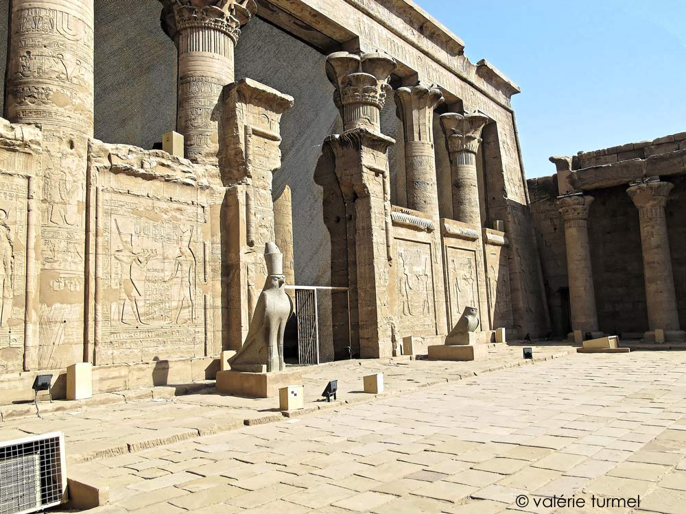 Le pronaos posséde une structure classique avec une façade à colonnes et murs-bahuts et une grande salle à colonnes. la salle mesure 40mètres d'Est en ouest et environ 19 m. du nord au Sud (S. Cauville, D. Devauchel, 1984, p.24).