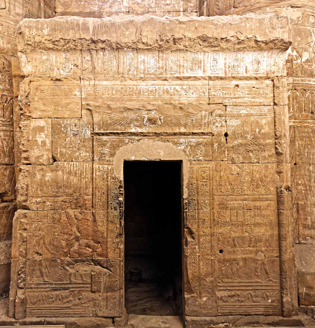 Le linteau de la porte représente les Baou de Pê et de Nekhen.