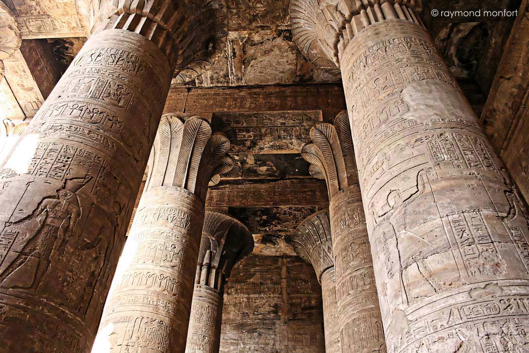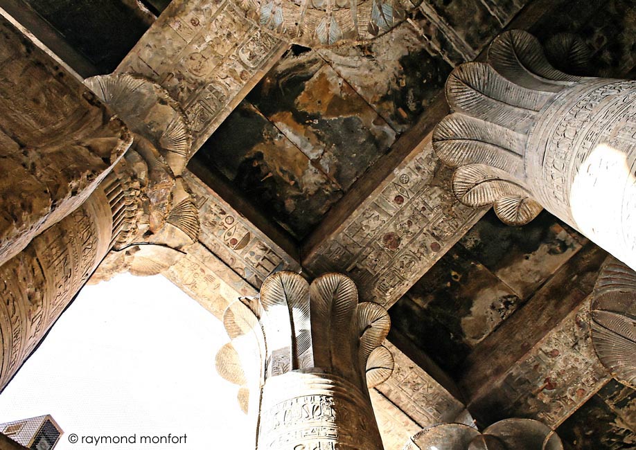 et de représentations d'Hathor symbolisant les 365 jours de l'année sur les côtés.