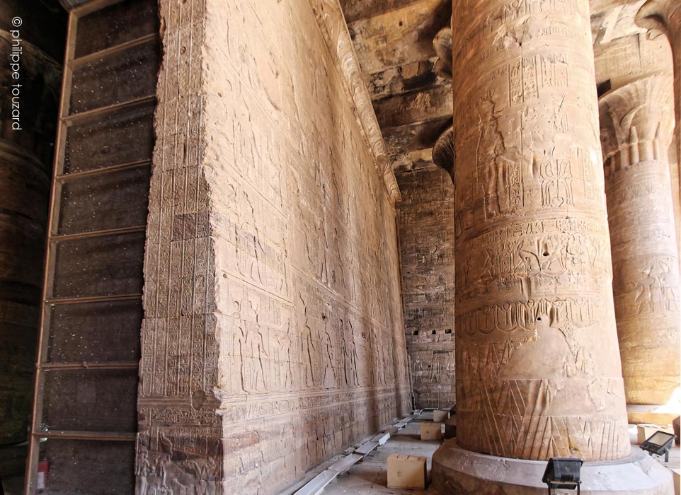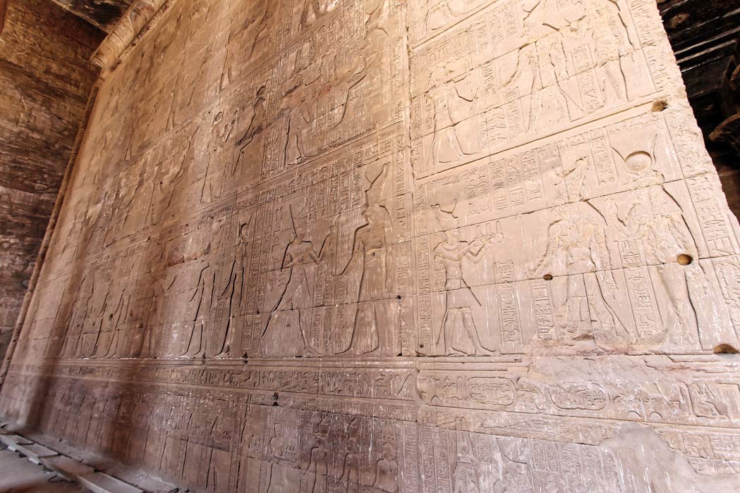 La paroi Nord a été conçue comme constituant la façade de la partie suivante plus sacrée du temple. Elle a été décorée par le roi Ptolémée VIII Evergétes II alors que la porte qu'elle englobe a été décorée par le roi Ptolémée IV Philopator qui est intervenu dans la suite du temple. Cette longue interruption est liée à une période de troubles au cours de laquelle les rois Ptolémée perdirent le contrôle de la Haute Égypte.