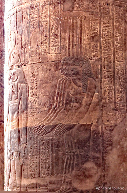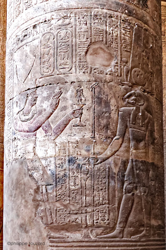 - Scène Nord : l'empereur Domitien fait un encensement et verse une libation devant Isis et Nephtys (ci-dessus)