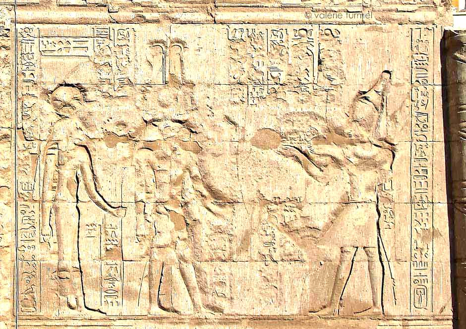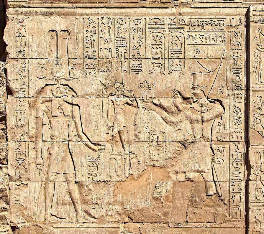 L'empereur fait une offrande à Khoum d'Esna, et Meryt.