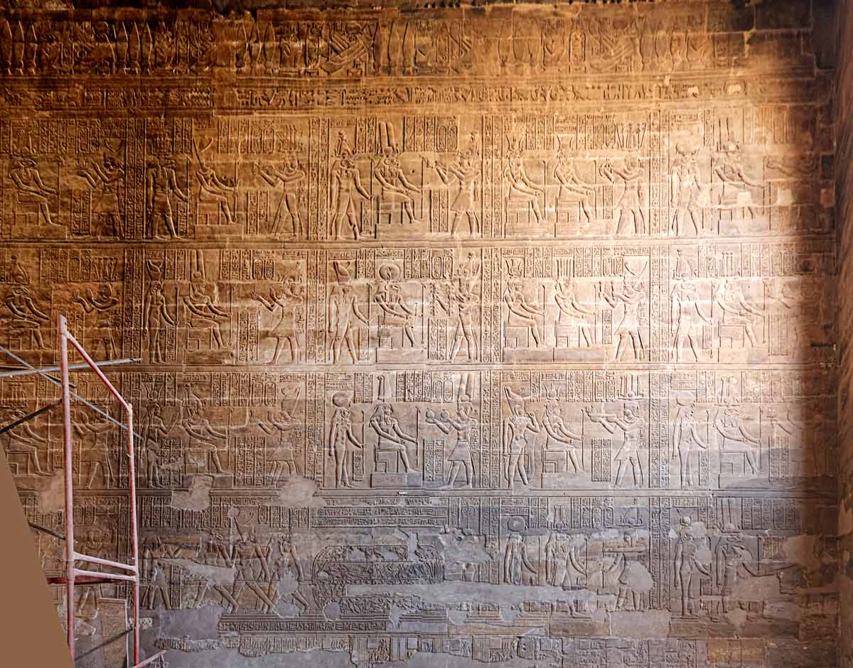 Caracalla offre la bande d'electrum, bandeau pour Hathor, à Hathor et à Isis.