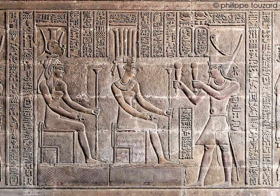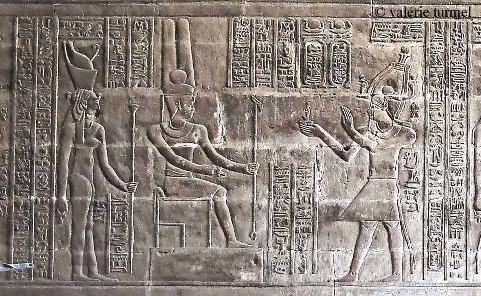 L'empereur Commode encense Khnoum-Rê sur son grand siège et Nebetouou.