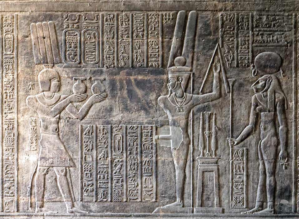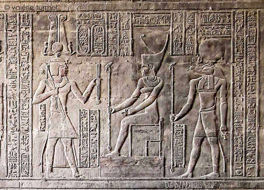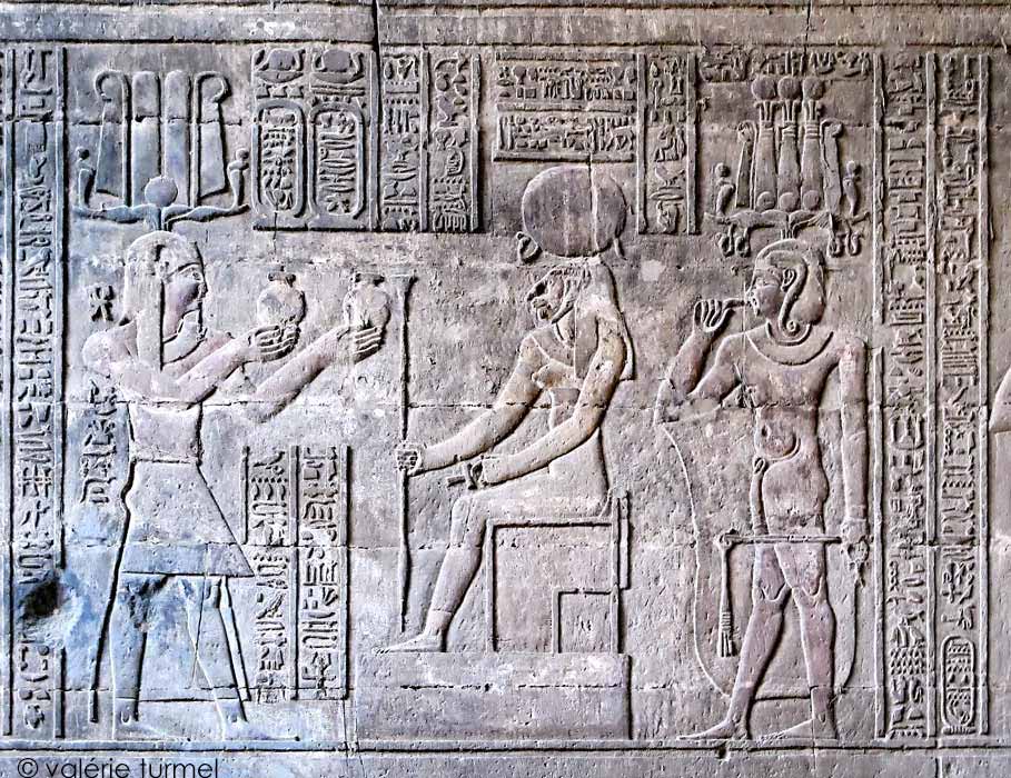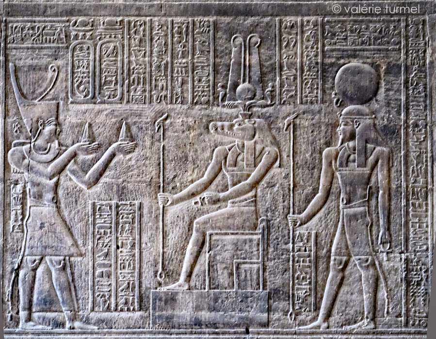 L'empereur Cracalla offre 2 vases de vin à Min et à la dame de qualité, Repyt. La déesse est représentée avec une tête de lionne. Considétée comme la parèdre de Min, notamment à l'époque grécoromaine, son nom a été transformé en Triphis en grec. Elle promet au roi une grande royauté établie pour l'éternité.