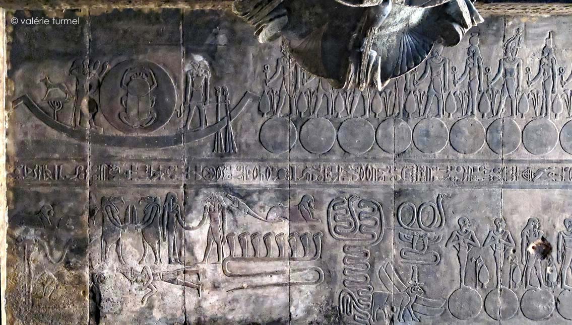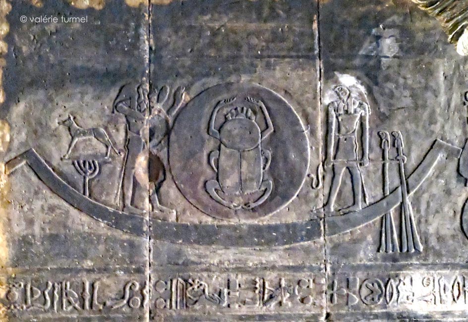 Au centre de la barque, un scarabée représentant le soleil levant.