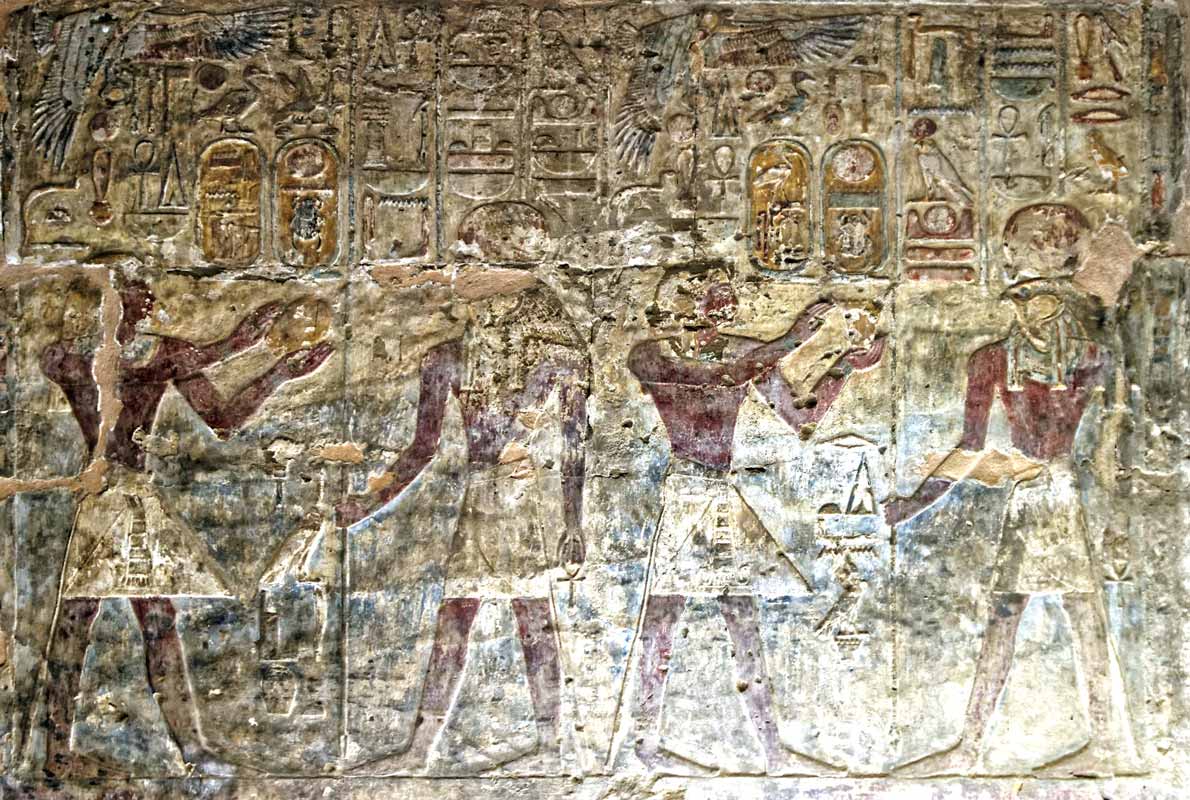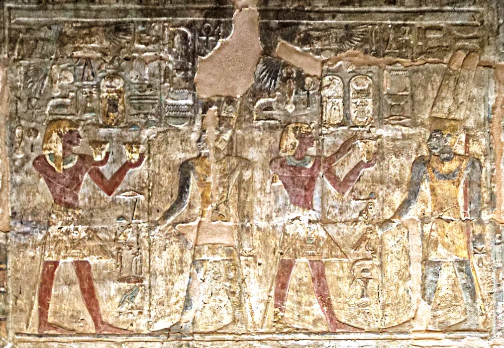 Le roi Aménophis II présente 2 vases de fard à Amon-Rê. le dieu lui donne toute vie et puissance. Nekhbet veille au dessus de la scène.