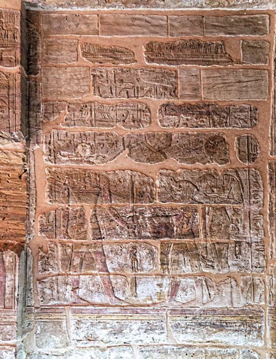 Une grande scène couvre un piler et la partie entre les piliers. A gauche, une autre scène sur le pilier.
