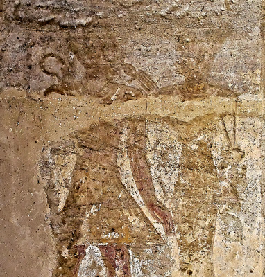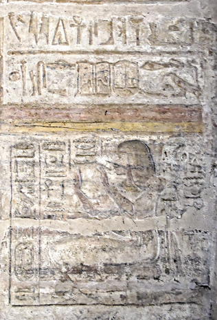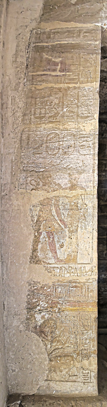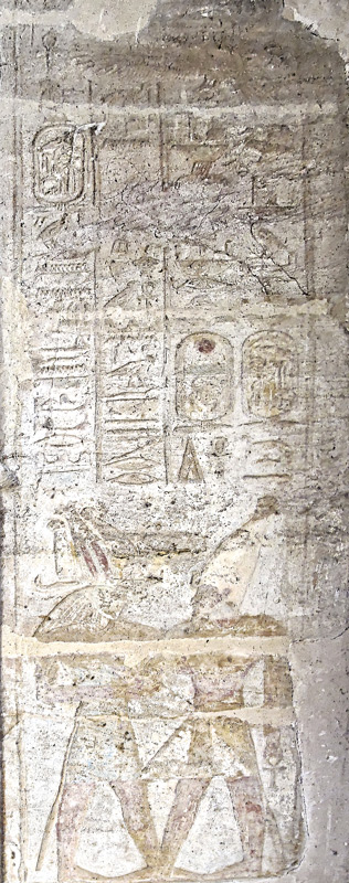 - tout en dessous, le vice-roi de Koush du temps de Ramsès II s'est fait représenter dans l'attitude de l'adoration devant le nom de Ramsès II.