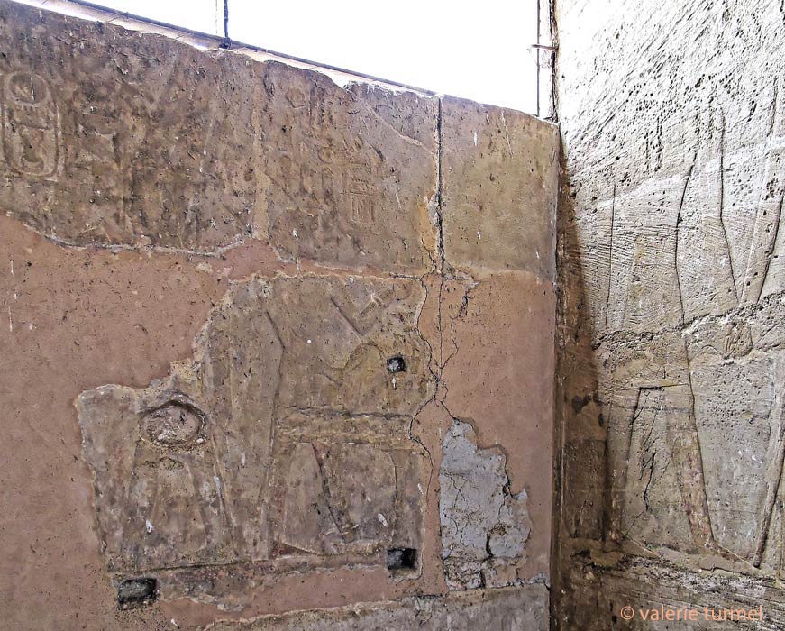 Le tableau de gauche de cette paroi est au nom de thoutmosis III et celui de droite au nom d'Aménophis II. A droite de la vue ci-dessus, la façade du portique.
