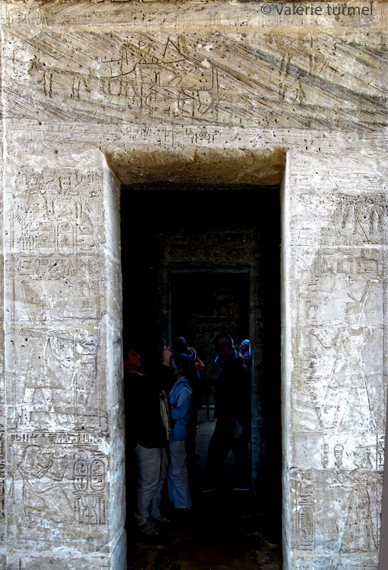 Sur les montants de la porte donnant sur le vestibule, les scènes sont encore visibles. Par contre le linteau est complètement dégradé. Le haut des montants représentent Thoutmosis III invitant à entrer. Par contre les scènes du bas sont postérieures : à gauche, un officiel devant les cartouches de Merenptah et à droite, la reine Taousert, deux personnages de la fin de la XIXème dynastie.