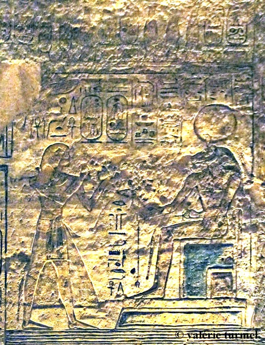 Cette scène se trouve entre la porte latérale et la porte du sanctuaire. Ramsès II tient le grand encensoir devant Amon-Rê à tête de bélier surmontée du disque solaire et d'un cobra. Le dieu donne au roi toute la bravoure. Le trône du dieu est coloré en bleu foncé. Devant lui, une colonne de texte décrit la scène.