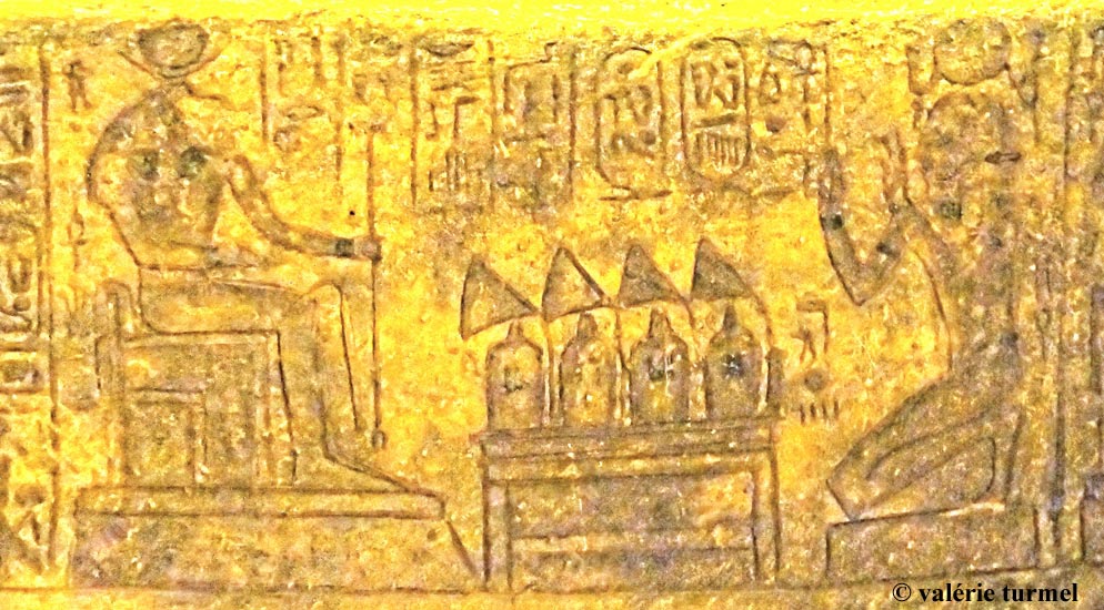 Ramsès II présente la cassolette d'encens à l'Horus de Miam.