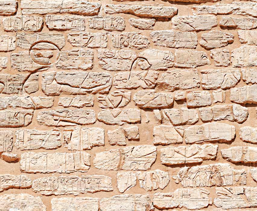 Le roi est agenouillé sur un socle sur lequel est gravé un Sema-Taouy.