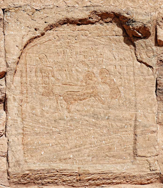 Cette stèle est elle aussi très érodée. Ramsès est debout sur son char. Devant lui, un personnage semble vouloir immobiliser le cheval.