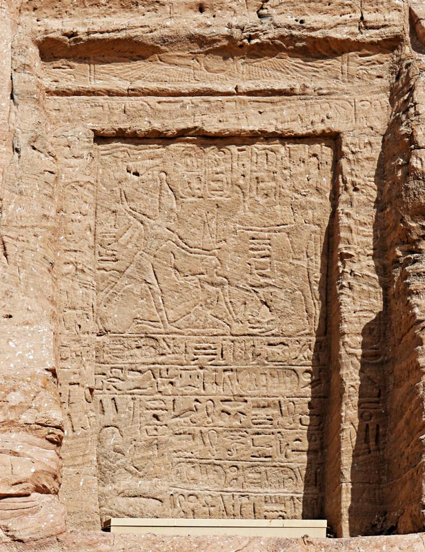 A droite, le roi léve sa massue contre un nubien devat l'Horus de Bouhen. En bas, le texte est lui aussi daté de l'an 38.